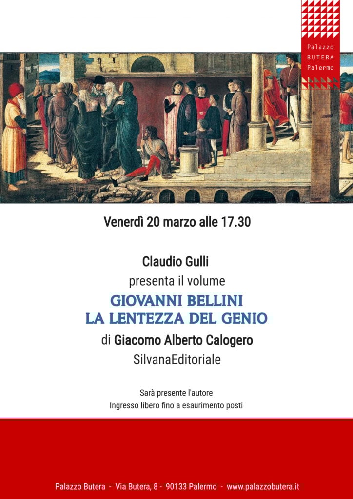 Venerdì 20 marzo alle ore 17.30, Palazzo Butera ospita la presentazione del volume “Giovanni Bellini. La lentezza del genio” di Giacomo Alberto Calogero, pubblicato da SilvanaEditoriale.